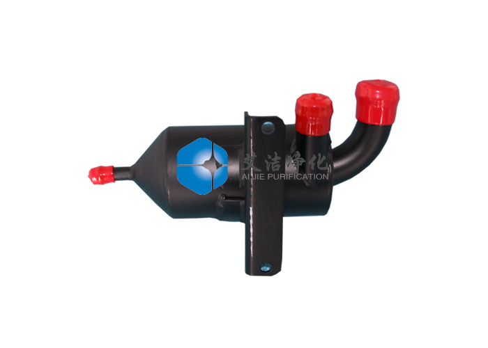 艾潔凈化生產(chǎn)的旋風(fēng)式油氣分離器是讓氣液混合氣經(jīng)過切向進(jìn)氣道或是螺旋進(jìn)氣道進(jìn)入分離器內(nèi),使混合氣在分離器內(nèi)旋轉(zhuǎn)運(yùn)動,以此產(chǎn)生離心力來實現(xiàn)油滴的分離,它的分離機(jī)理與主動離心式油氣分離器相同,只是不需外界提供動力。